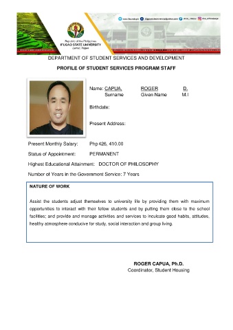 DEPARTMENT OF STUDENT SERVICES AND DEVELOPMENT