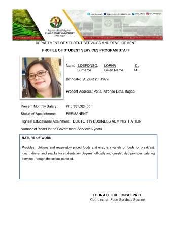 DEPARTMENT OF STUDENT SERVICES AND DEVELOPMENT