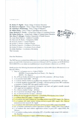 The PMT has just concluded their deliberation on our performance evaluation for C.Y. 2016. We were