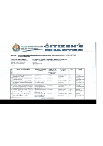 OFFICES: DEPARTMENT OF REGISTRAR AND ADMISSION SERVICES, COLLEGE, ACCOUNTING OFFICE,