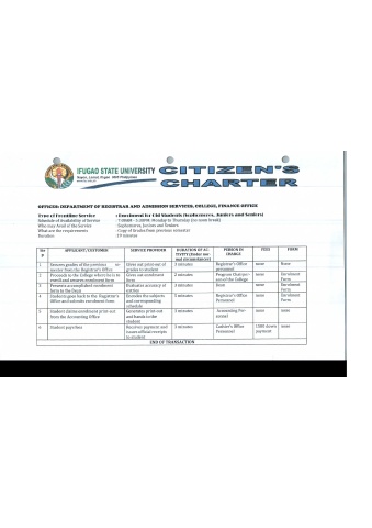 OFFICES: DEPARTMENT OF REGISTRAR AND ADMISSION SERVICES, COLLEGE, FINANCE OFFICE
