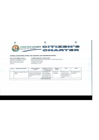 1 Submit a receipt of the test Constructs entrance test; 45 minutes or Guidance P150 or more Psychological Test