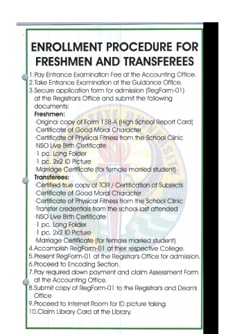 5.Present RegForm-01 at the Registrar's Office for admission.