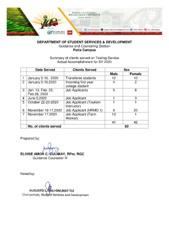 Actual Accomplishment for SY 2020