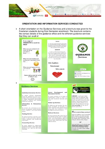 ORIENTATION AND INFORMATION SERVICES CONDUCTED