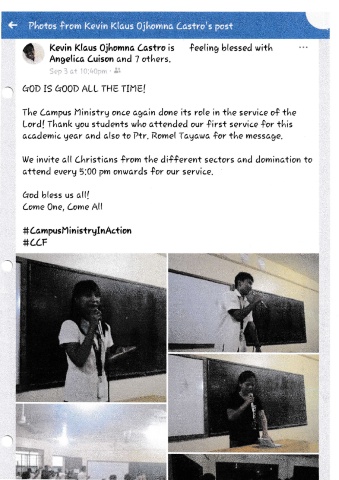 The Carnpus l"linistrV onLe aEain done its role in the seruice of the