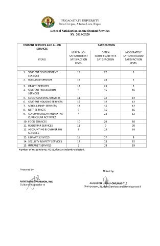 STUDENT SERVICES AND ALLIED SATISFACTION