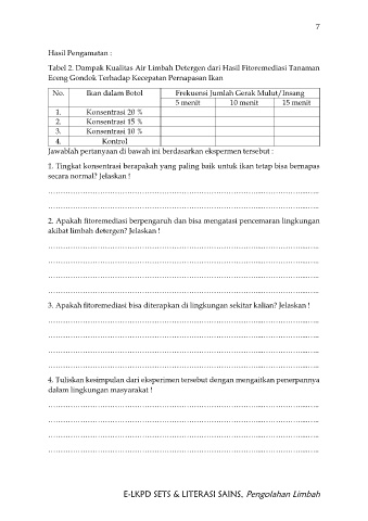 Tabel 2. Dampak Kualitas Air Limbah Detergen dari Hasil Fitoremediasi Tanaman