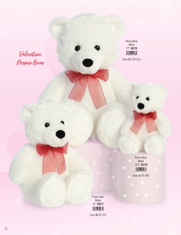 Promo Bear White 22” 50278 Valentine Promo Bear Case $11.90 (12) Promo Bear White 10.5” 50276 Case $3.55 (48) Promo Bear White 15” 50277 Case $6.03 (24) 16 16