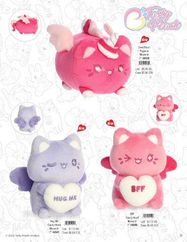 New Sweetheart Pegasus Meowchi 7” 44539 List $6.90 (6) Case $5.90 (24) New New BFF Candy Heart Hug Me Meowchi List $7.73 (4) Candy Heart 7” 44540 Case $6.60 (12) Meowchi List $7.73 (4) 7” 44541 Case $6.60 (12) © 2025 Tasty Peach Studios 19 19