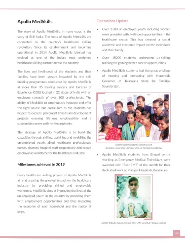 employable workforce for the healthcare industry. • Apollo MedSkills students from Bhopal centre