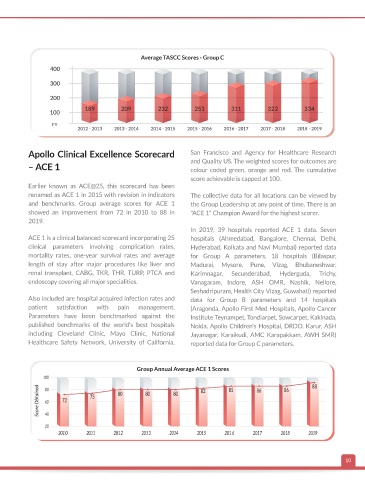 ACE 1 is a clinical balanced scorecard incorporating 25 hospitals (Ahmedabad, Bangalore, Chennai, Delhi,