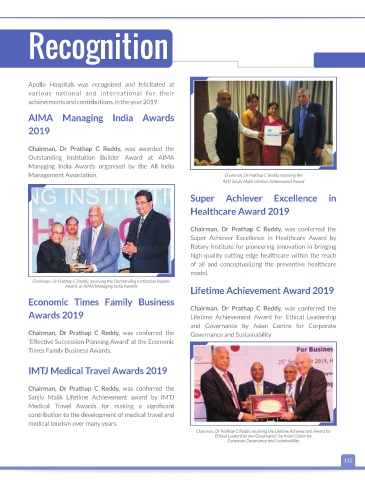Chairman, Dr Prathap C Reddy, was awarded the
