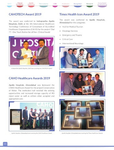 Apollo Hospitals, Ahmedabad team receiving the CAHO Healthcare Award Apollo Hospitals, Ahmedabad team receiving the Times Health Icon Awards
