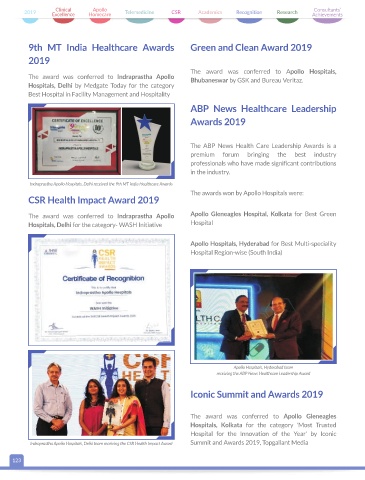 Indraprastha Apollo Hospitals, Delhi received the 9th MT India Healthcare Awards