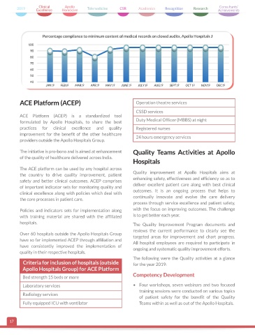 Percentage compliance to minimum content of medical records on closed audits, Apollo Hospitals J
