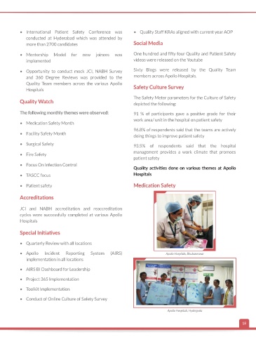 • International Patient Safety Conference was • Quality Staff KRAs aligned with current year AOP