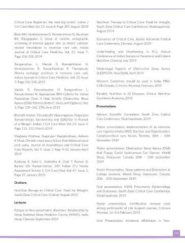 Critical Care Registries: the next big stride?, Indian J Nutrition Therapy in Critical Care: Food for thought,