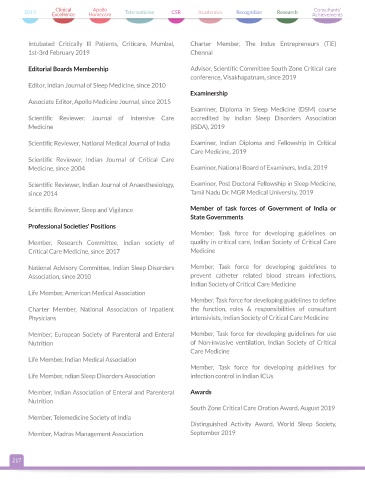 Scientific Reviewer, Indian Journal of Anaesthesiology, Examiner, Post Doctoral Fellowship in Sleep Medicine,