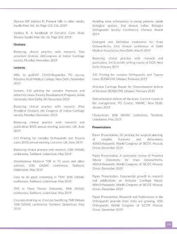 cases, BIOS annual meeting, Leicester, UK, June 2019 40thOrthopaedic World Congress of SICOT, Muscat,