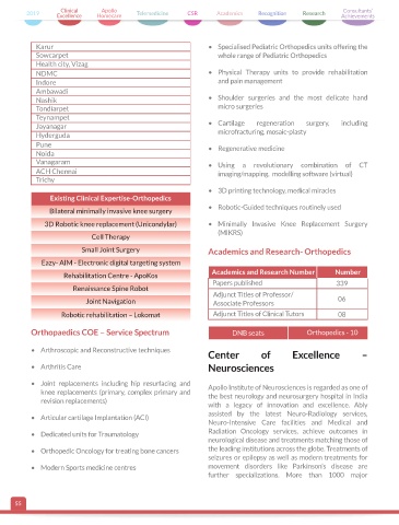 • Joint replacements including hip resurfacing and Apollo Institute of Neurosciences is regarded as one of