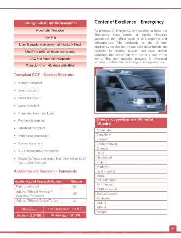 Existing Clinical Expertise-Transplants Center of Excellence – Emergency
