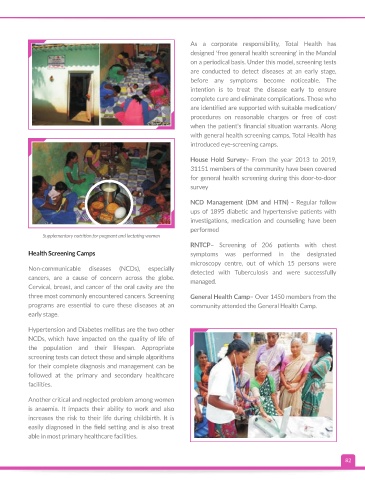 three most commonly encountered cancers. Screening General Health Camp– Over 1450 members from the