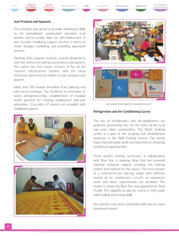 promotion. Currently, 67 women are provided with Jute products and apparels manufacturing unit