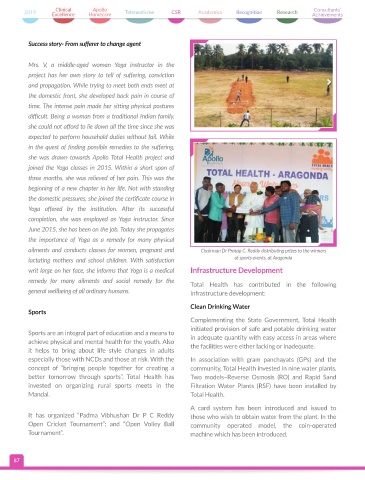 ailments and conducts classes for women, pregnant and Chairman Dr Pratap C. Reddy distributing prizes to the winners