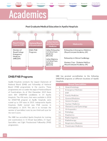 The NBE has accredited Apollo Hospitals for training 12. Radio diagnosis