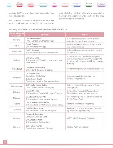 Following is the list of Clinical Presentations which were held in 2019