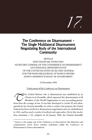Geneva is the unique seat of the Conference on Disarmament, this illustrative and