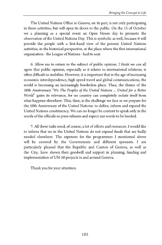 the 50th Anniversary of the United Nations: to define, inform and expand the