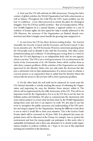 reform will be implemented by the 50th Anniversary of the UN. This will be an