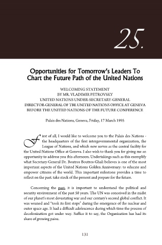 F irst of all, I would like to welcome you to the Palais des Nations -