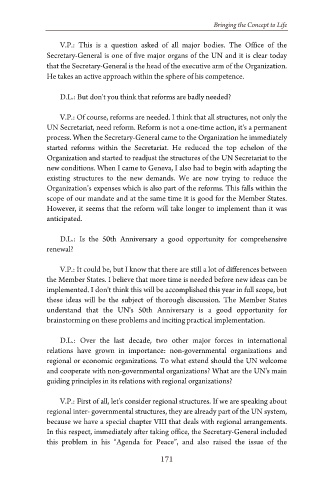 V.P.: Of course, reforms are needed. I think that all structures, not only the