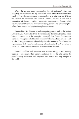 budgetary crises subsides, it is my hope that Geneva International will weather