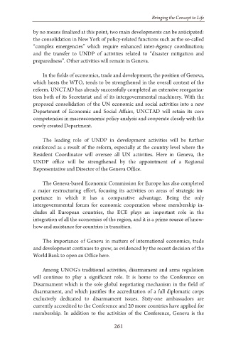and the transfer to UNDP of activities related to “disaster mitigation and