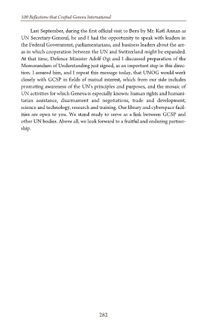 Last September, during the first official visit to Bern by Mr. Kofi Annan as
