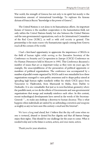 feature of Geneva is the excellent cooperation in the humanitarian field, not