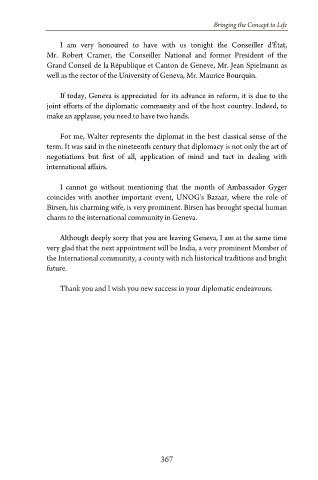 Although deeply sorry that you are leaving Geneva, I am at the same time