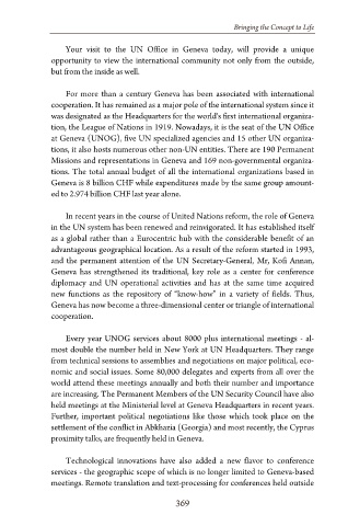 at Geneva (UNOG), five UN specialized agencies and 15 other UN organiza-