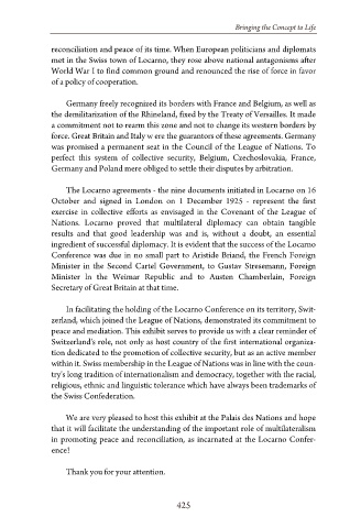in promoting peace and reconciliation, as incarnated at the Locarno Confer-