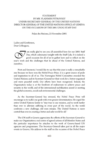 events in Geneva. His address to the staff on the occasion of the Nobel Peace
