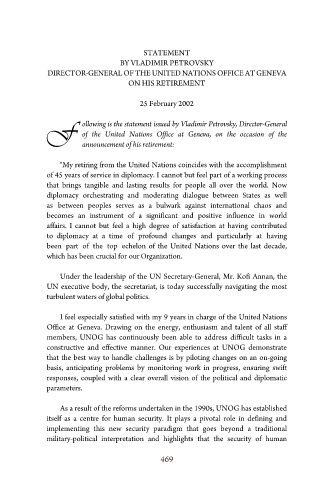 F ollowing is the statement issued by Vladimir Petrovsky, Director-General