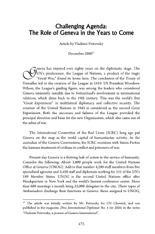 “Vladimir Petrovsky, a pioneer of Geneva International”.
