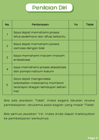 pembelajaran, terutama pada bagian yang masih "Tidak".