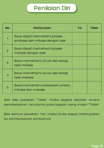 pembelajaran, terutama pada bagian yang masih "Tidak".