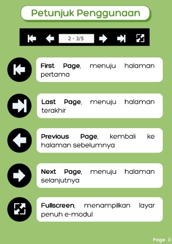 Petunjuk Penggunaan First Page, menuju halaman pertama Last Page, menuju halaman terakhir Previous Page, kembali ke halaman sebelumnya Next Page, menuju halaman selanjutnya Fullscreen, menampilkan layar penuh e-modul Page ii