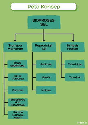 Peta Konsep BIOPROSES SEL Transpor Reproduksi Sintesis Membran Sel Protein Difusi Sederhana Amitosis Transkripsi Difusi Terbantu Mitosis Translasi Osmosis Meiosis Endositosis dan Eksositosis Pompa Natrium- Kalium Page vi